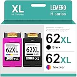 - The set includes: Lemero remanufactured 62 XL cartridges, compatible with HP 62 printer cartridges, 1 x black, 1 x colour (not original)