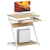 - MATERIAL Computertisch besteht aus Spanplatte in Buchenfarbe. Die Rollen sind aus stabilem Kunststoff.