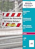 - Extrem strapazierfähige wetterfeste Folien auf DIN-A4 Bogen im Format 210x297 mm, zur Kennzeichnung im Innen- und Außenbereich mit einer Stärke von 0,12 mm