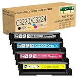 - Packungsinhalt: C3220 C3224 Tonerkartusche; 1× schwarze Tonerkartusche, 1× cyan、1× magent、1× gelbe Tonerkartusche für C3220C0 C3220K0 C3220M0 C3220Y0 Chip