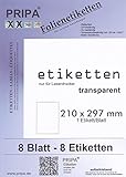 Folien Etiketten 210 X 297-8Blatt - Wetterfest - Transparent Matt - Laserdrucker - Outdoor