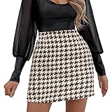Generisch Modischer High-Waist Minirock mit Hunde-Muster Plakat-Print für trendbewusste (Khaki, L)
