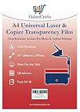 - Habercrafts Die transparente Universal-Folie im A4-Format ermöglicht es Ihnen, klare und prägnante Ausdrucke für Ihre Präsentationen, Kunstwerke und Projekte zu produzieren, egal ob sie schwarz und weiß oder in Farbe von Ihrem Laserdrucker sind.