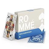- Hochwertige wasserfeste und abwaschbare PREMIUM Spielkarten aus 100% Kunststoff / Plastik +. Die Romme Karten sind dadurch länger haltbar, reiß- und knickfest und liegen gut in der Hand. Die Haltbarkeit im Vergleich zu Papier- oder Leinen- Karten ist bis zu 30x höher.