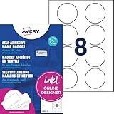 - 60 weiße selbstklebende Namensetiketten aus hochwertiger Acetatseide im Format Ø100mm - Textiletiketten sind die schonende Alternative zu Plastikschildern mit Nadel und Clip