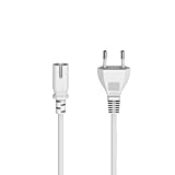 - 2-poliges Netzkabel mit Eurostecker: 1,5 m langes Kabel zum Anschluss ans 230 V Stromnetz, Anschlussbuchse nach Europanorm Euro 8 auf Doppelnut (C7), VDE geprüft, erfüllt alle Schutzanforderungen