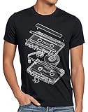 style3 DJ Tape Herren T-Shirt Kassette 3D Turntable Retro, Größe:XXL, Farbe:Schwarz