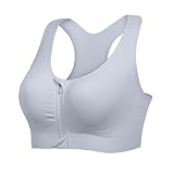 Lemef Sport BH Damen mit Reißverschluss Vorne Ohne Bügel Sports Bra Fitness Yoga Grau M