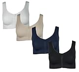 4er Pack Damen Komfort BH mit Reißverschluss Bustier Top Shirt BH; Farbe: Schwarz; Größe: M