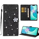 - Kompatibilität: Klappbar handy hülle mit glänzenden Strasssteinen und Prägung Blumenmotiven kompatibel mit Huawei P9 Lite