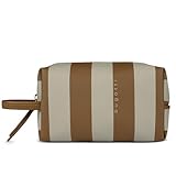 bugatti Cleo Kosmetiktasche, kleines Täschchen aus gestreiftem Kunstleder in Cognac/beige