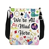 - Material: Diese "We're All Mad Here" Alices-Umhängetasche mit Reißverschluss ist aus hochwertigem, wasserdichtem Polyester-Material, doppelt genäht und nicht leicht zu durchstechen. Druck mit hochwertigen Bildern und Texten