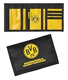 - OFFIZIELLES DESIGN: Original BVB Borussia Dortmund Geldbörse in Schwarz mit charakteristischem Neon-Logo auf der Vorderseite