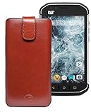 Favory ECHT Ledertasche Leder Etui / Caterpillar CAT S40 Tasche (Lasche mit Rückzugfunktion) braun