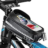 - Wasserdicht & 3D Sonnenblende: Das Oberrohr Fahrradtasche ist aus wasserdichtem Carbon-Korn mit hochwertiger PU-Beschichtung, 3D EVA Hartschale, nahtlose wasserdichte Doppelreißverschlüsse Design kann Ihr Telefon besser in regnerischen Tagen und extremen Umgebungen zu schützen. Die 3D-Sonnenblende Abdeckung auf der Oberseite, die deutlich durch den Handy-Bildschirm, die für sonnige Tage groß sehen kann.