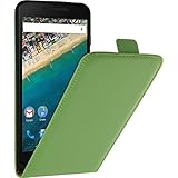 PhoneNatic Kunst-Lederhülle kompatibel mit Google Nexus 5X - Flip-Case grün + 2 Schutzfolien