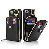 - handykette handyhülle iphone 7 mit band iphone 8 hülle iphone se 2020 hülle iphone se 2022 iphone se2 mit kartenfach mit umhängeband um band leder geldbörse hülle mit kette klapphülle handytasche für frauen