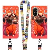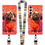 - [Kompatible Modelle]-Diese Leder Hülle mit band ist NUR Kompatibel mit Samsung Galaxy A05S 5G (6.7") (bitte überprüfen Sie vor dem Kauf Ihr Modell).Präzise Aussparungen für Kamera und Ports,Perfekt angepasst an dein Handy.Mit (Mops mit Brille) Muster Hülle verleihen Ihrem Handy Charme und Romantik und machen es noch attraktiver.