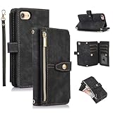 - ✅KOMPATIBEL MODEL - Spezielles praktisches Design für iPhone 7 Plus/8 Plus Handyhülle mit Geldbörse und Kartenfächern,Stoßfeste Ledertasche mit Reißverschluss Magnetverschluss Standfuntion.