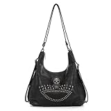 - ☀HOHES QUALITÄTSMATERIAL: Diese Niettasche besteht aus weich gewaschenem, gewaschenem PU-Leder mit strapazierfähigem Reißverschluss und Nieten. Robust und langlebig.