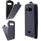 - Hülle Leder schwarz - ideales Smartphone Zubehör mit praktischem Klettverschluss zum sicheren Verschluss, verhindert das Herausfallen des Nokia Lumia 730 aus der Ledertasche.