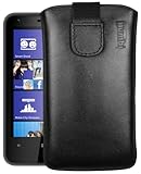 - Hülle Leder schwarz - ideales Smartphone Zubehör mit praktischem Klettverschluss zum sicheren Verschluss, verhindert das Herausfallen des Nokia Lumia 620 aus der Ledertasche.