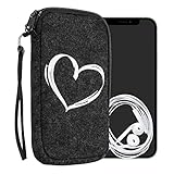 - RUNDUM SCHUTZ: Schenke Deinem Smartphone einen neuen Look mit dieser stilvollen Schutztasche im Herz Brush Design in Weiß Dunkelgrau. Da die Tasche aus FIlz besteht, ist Dein Telefon ideal geschützt.