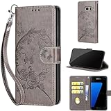 Ymyhyuxi Leder-Klapphülle für Samsung Galaxy S7, Visitenkartenetui, Handytasche, Grau