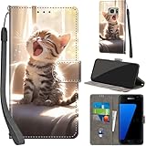 - PU Klappbar Leaderhülle schutzhülle wallet tasche mit Band 360 Grad kompatibel mit Samsung Galaxy S7. TPU Gummi Silikon Kawaii Hüllen mit Lustig Motiv für Mädchen Damen