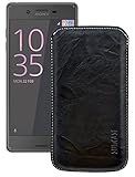 - Xperia X Performance Echt Leder Tasche - Dank der eingenähten Lasche, welche sich beim Einschieben zurückzieht, können Sie Ihr X Performance einfach aus der Handytasche nehmen.