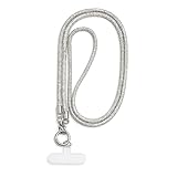 AOKSUNOVA Schlüsselband Glitzer Handykette Lang Schlüsselanhänger Handyband zum Umhängen Silber