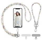 - 【3in1 Glitzer Handykette bekommen】:Sie werden eine 120 cm lange Glitzer Weiß Perlen Handyband mit hochwertig metalhaken & Schlaufen erhalten, es kann auch wieder in zwei Teile aufgeteilt werde:90cm Halskette + ca 30cm Trageschlaufe am Handgelenk, und 2 universal Patch zum Austausch