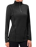 TCA Frauen Winter Langarm Laufshirt mit Reißverschluss - Schwarz, M