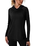 - STYLISH: Damen Fitness langärmelige Oberteil mit langen Ärmeln und Kapuze, modischen Stil, geschwungenes Design, um Taille und Bauchfett zu bedecken, Kapuze, um die Sonne zu blockieren, bequem zu tragen.