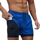 - [Schnelltrocknung]: Herren laufshorts 2in1 shorts haben eine hervorragende Schnelltrocknung, mit einer leichten Außenschicht für Wärmeableitung und einer Innenschicht für Feuchtigkeitsaufnahme und schnelles Trocknen, die ein besseres Tragegefühl durch zirkulierende Wärmeableitung und Feuchtigkeitsableitung bietet.