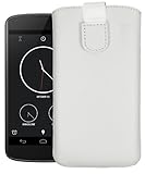 - Hülle Leder weiss - ideales Smartphone Zubehör mit praktischem Klettverschluss zum sicheren Verschluss, verhindert das Herausfallen des LG Nexus 4 aus der Ledertasche.