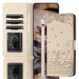 - 【Exklusives Design】: Das Produkt verfügt über Tiermotiv-Reliefs, auf denen eine entzückende Katze unter Vollmond auf einem Zaun die Nachtszenerie, Blumen, Schmetterlinge und herabfallende Blätter bewundert und so die warme und harmonische Schönheit des Lebens spürt. Es ist in fünf warmen, retro-stämmigen, sanften Farben erhältlich: Braun, Blau, Weinrot, Lila und Aprikosenfarbe. 【Schlüsselwörter】: Samsung Galaxy A17 5G/4G Handyhülle mit Tier Katzen Muster Motiv