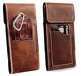 - SMARTPHONE HÜFTTASCHE - aus echtem Rindsleder |vertikal, schlicht und elegant | Im hochwertig elegantem Design | Karabinerhaken Gürtelclip und Gürtelschlaufe |