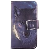 Lankashi PU Flip Leder Tasche Hülle Case Cover Schutz Handy Etui Skin Für Wiko Freddy 5" Wolf Design