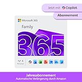 Microsoft 365 Family | 1 Jahr | bis zu 6 Personen | Office Apps mit KI | bis zu 6 TB Cloudspeicher | Amazon Abonnement mit automatischer Verlängerung