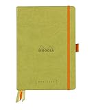 - Weicher Deckel aus italienischem Kunstleder mit geprägtem Rhodia Logo, Rücken verleimt, 120 Blatt nummeriert, 6 Seiten Index, immerwährender Kalender & Lesezeichen