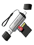 - 【USB 3.0 & USB-C-Dualstecker】Dieser Kartenleser ist sowohl mit USB-C- als auch mit USB-Anschlüssen ausgestattet. Die USB-C-Schnittstelle unterstützt OTG und ist weitgehend kompatibel mit iPhone 17/16/15-Series, iPad Series, macbook Series, Surface, Samsung, Huawei, Smartphones, Laptops, Desktop-Computer und den meisten anderen USB-C / A-Geräten. Ein sehr praktisches Zubehör für Fotografen oder alle, die eine einfache Möglichkeit benötigen, Dateien von SD-Karten auf einen Computer zu übertragen.
