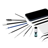 - Lieferumfang: Spudger, Hellebarde-Spudger, abgewinkelte Pinzette, D100L, zylindrische Bürste, mittelgroßer Tupfer mit Schaumstoffspitze, Präzisions-Tupfer mit Schaumstoffspitze, Präzisions-Micro-Pinsel mit Spitze, kleiner Detail-Pinsel, Kunststoff-Plektrum und Pinsel-Kombination, fusselfreie Reinraumtücher.