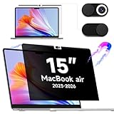 - 【Magnetische Installation + Nano-Saugnapf】Das MacBook Air-Datenschutzfilter-Design verfügt über magnetische Anziehungskraft und Nano-Saugnapf, und es haftet fest am MacBook Air 15 Zoll. Der Nano-Saugnapf löst das Problem des Schwebens am unteren Rand und kann je nach Bedarf in zwei Sekunden installiert und einfach abgenommen werden. Keine Sorgen über unordentliche Klebstoffe und Luftblasen. Es gibt keine Lücke, wenn das MacBook Air 15 geschlossen wird.