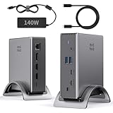 - 【⭐USB-C-Ladeanschluss – 125 W PD- und CE-zertifiziert】Diese USB-C-Dockingstation mit 3 Bildschirmen unterstützt eine Eingangsleistung von bis zu 140 W und eine (sichere) Ausgangsleistung von 125 W für Laptops, während mehrere leistungsstarke Peripheriegeräte angeschlossen werden können. Im Lieferumfang ist ein 140-W-Netzteil enthalten. Der PD-Anschluss ist mit Thunderbolt 3/4-Schnittstellen kompatibel und ermöglicht so schnelles Laden. Hinweis: Bitte stellen Sie sicher, dass der USB-C-Anschluss Ihres Laptops Power Delivery-Protokolle unterstützt.