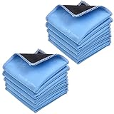 - Hochwertige Mikrofasertücher: Die Packung enthält 10 doppelseitige Reinigungstücher (6,6 Zoll x 6,2 Zoll) (16,7 cm x 15,7 cm) Schwarze Seite: Mikrofaser & Blaue Seite: Wildleder. Die sehr feinen Fasern des Tuchs eignen sich perfekt zum Aufnehmen von Fett und Schmutz.
