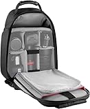 - RUCKSACK FÜR KAMERA UND LAPTOP - Passend für DSLR-Kameras mit angesetztem 70-200-mm-Objektiv, 3-4 Standardobjektiven und anderem Zubehör. Mit einem gepolsterten Laptopfach für einen 13,3-Zoll-Laptop. Abmessungen: L 36 cm x B 26 cm x H 14,5 cm.