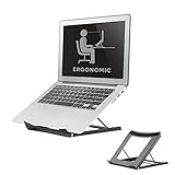 - Um den Winkel von Notebook und Bildschirm genau an Ihre Größe und Sitz-Position anpassen zu können, verfügt der mobile Laptop-Ständer über 5 Positionen in denen er justiert werden kann.