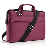 - 【Multifunktion】 Der Griff ist dick gepolstert. Der Schultergurt ist abnehmbar und verstellbar für einfaches Tragen. Eine Rückentasche mit Klettverschluss ermöglicht ein sicheres Herausnehmen/Einstecken Ihrer Gegenstände mit Komfort. Organisierte Fächern: Stifthalter und Einschubtasche innen. Genügend Platz für Ladegerät, Maus, Handy, Stifte, Karten, usw. Laptop-Tasche kann auf 2 Arten getragen werden: in der Hand oder über der Schulter