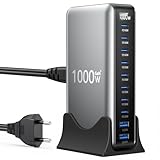- 【10-Port USBC Charging Station】Die 1000W Ladestation ist mit 5 USBC und 5 USBA Anschlüssen ausgestattet. Sie kann bis zu 10 Geräte gleichzeitig aufladen und unterstützt sowohl PD3.0- als auch QC4.0-Schnellladetechnologie. Wenn Sie mehrere Geräte gleichzeitig mit Strom versorgen müssen, sorgt diese Multi-Port-Ladestation für einen sauberen und aufgeräumten Schreibtisch.